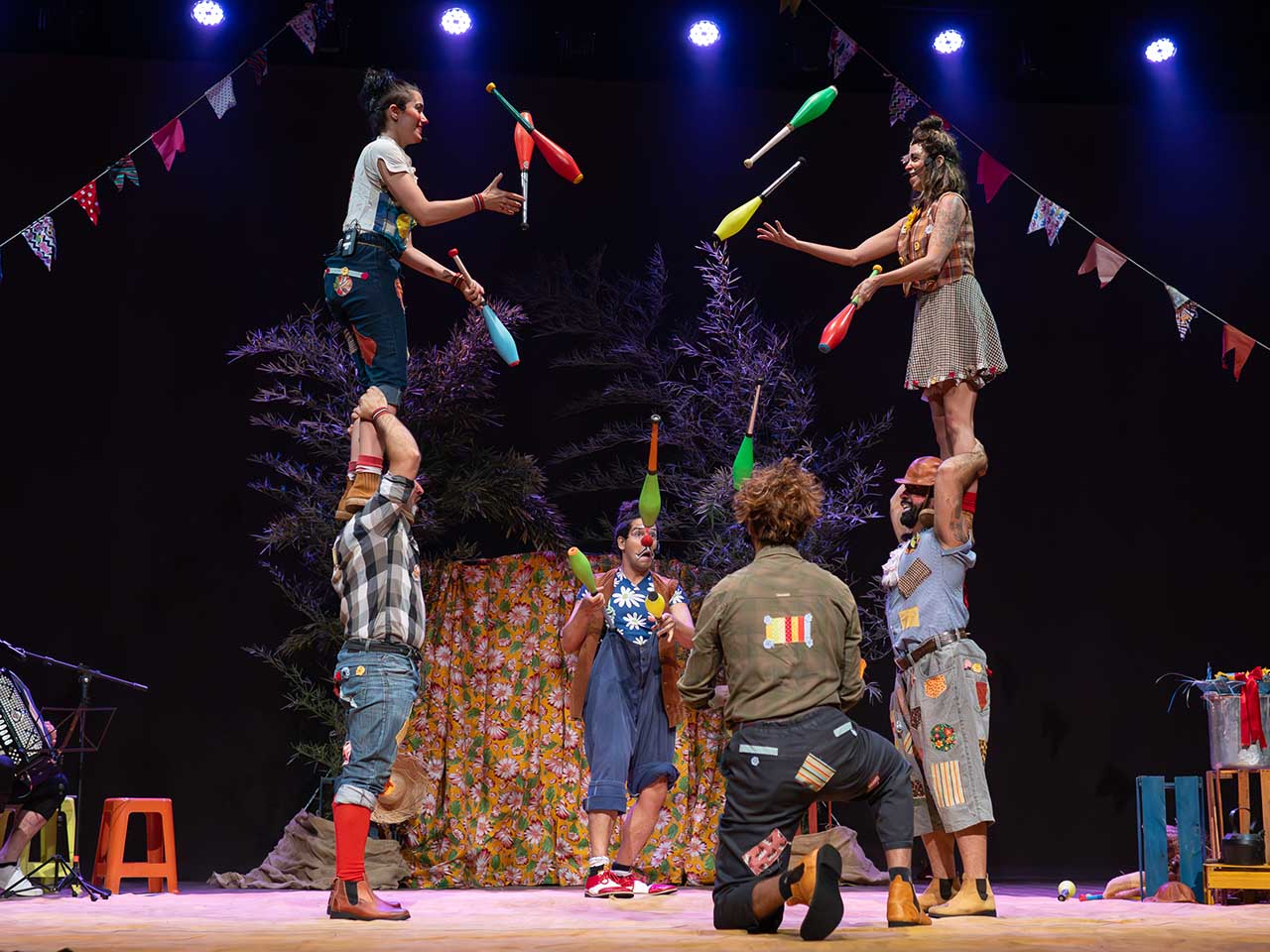 Montagem de palhaçaria que revisita números clássicos do circo, combinando tradição, música ao vivo e improvisação, com participação ativa do público.